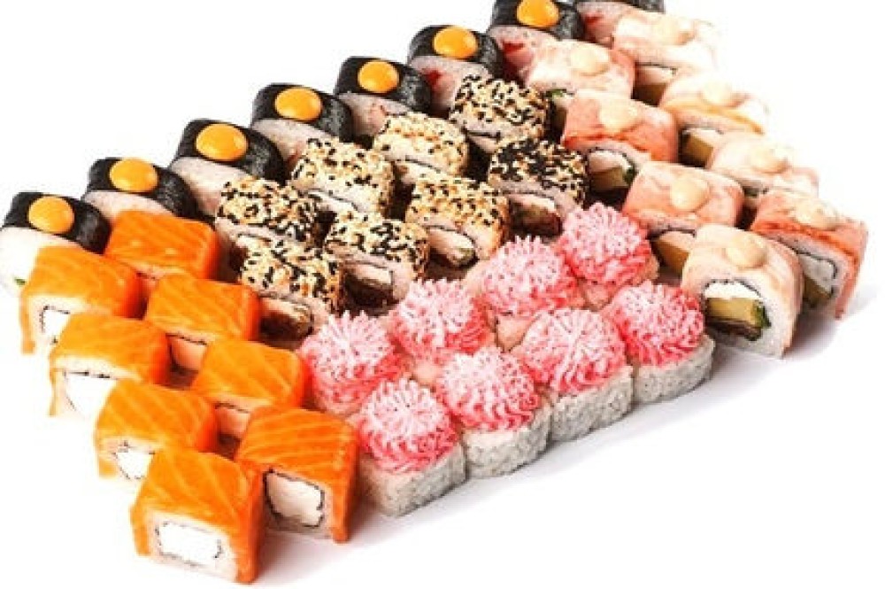 5 роллов, 40 шт. Филадельфия классика, Лава с креветкой, Беконаизер с беконом и японским омлетом томаго, Филадельфия с угрем в кунжуте микс, Чики пики с курочкой х/к и соусом спайси.
