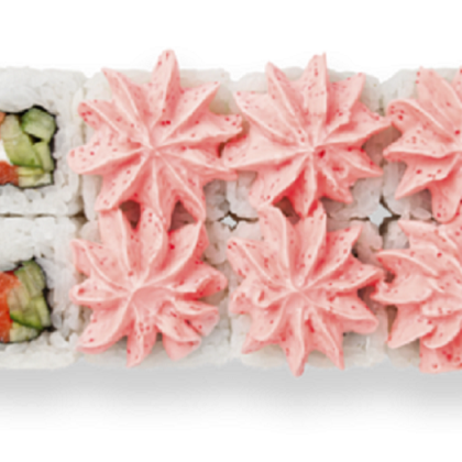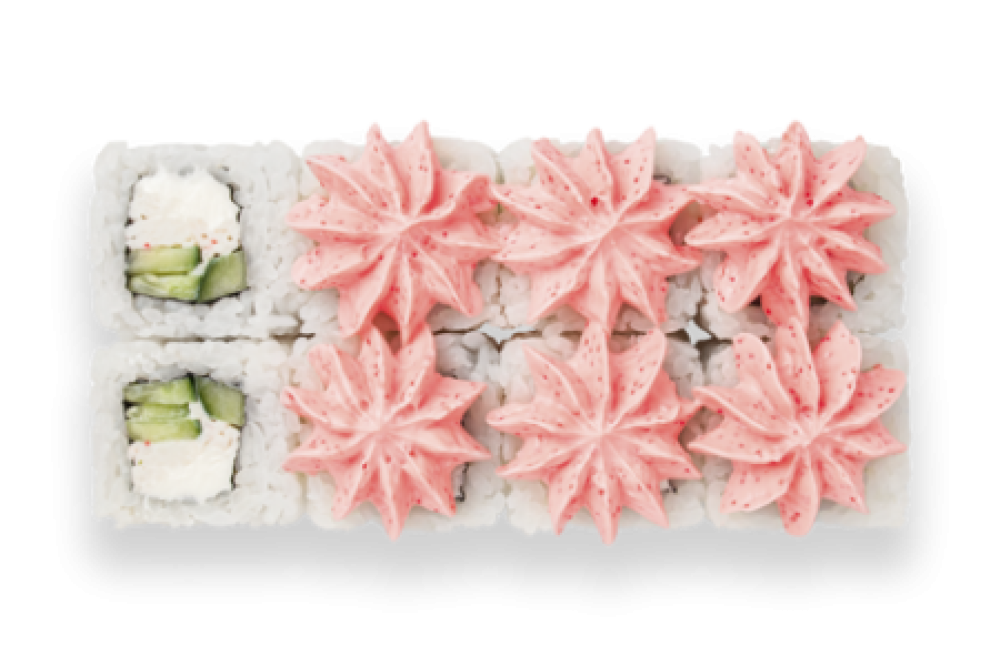 Сурими (имитацией мяса краба), сыр творожный, огурец, рис, нори, соус Лава