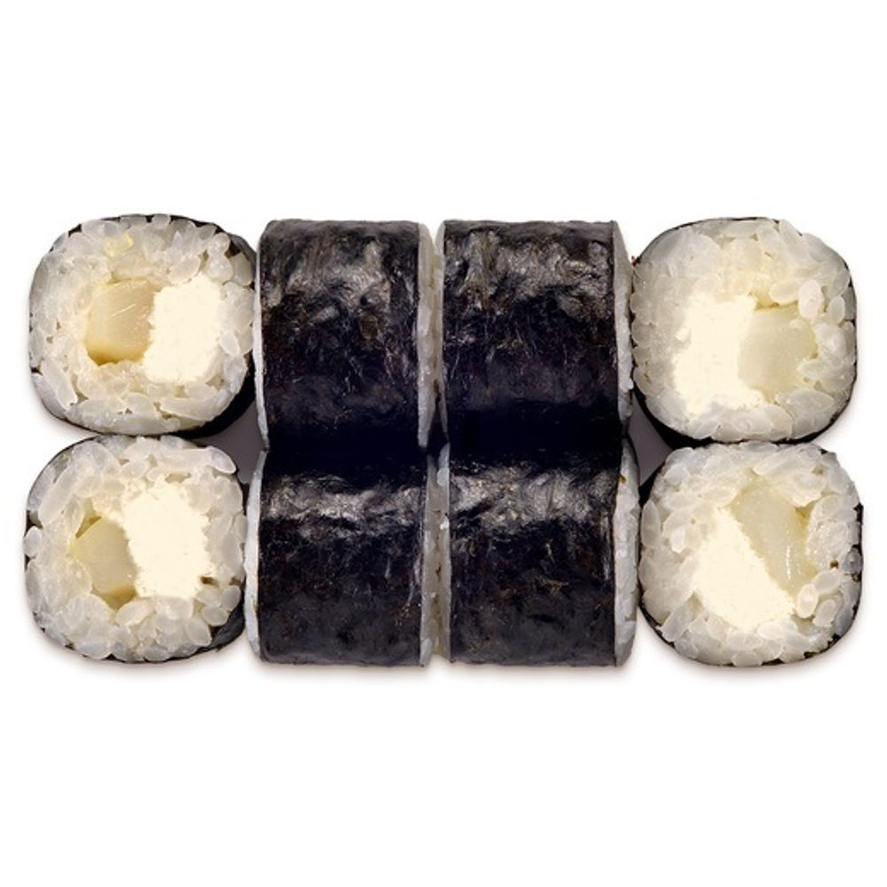 Сыр, филе кальмара копченный, рис, нори.