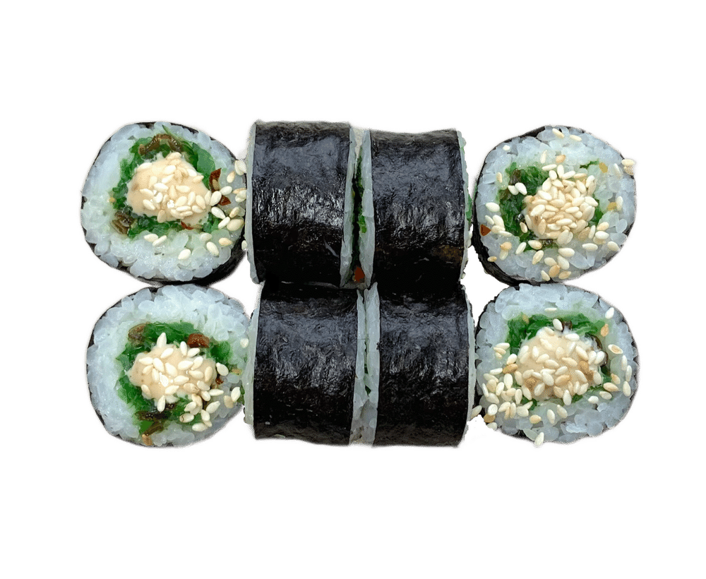 Водоросли Чука, рис, нори, украшен ореховым соусом.