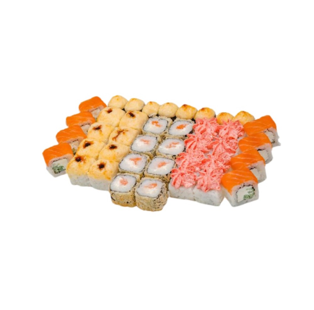 5 роллов, 40 шт. Филадельфия лайт с огурцом, Лава с крабом, Запеченный маки (с тунцом), Запеченный тори (с курицей х/к), Нежный с лососем темпура.